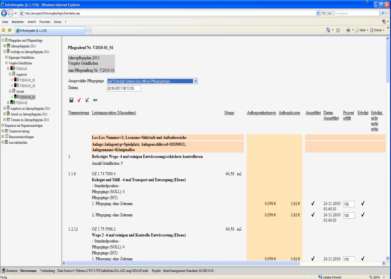 Pflegeplan für Grünflächenpflege - Abrufe zu Auftrag |