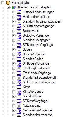 • Fachobjkete zu Nebenkarten: Biotope, Boden, Wasser, Luft,  Klima, Natur,   Erholung, Schutzgebiete, ...